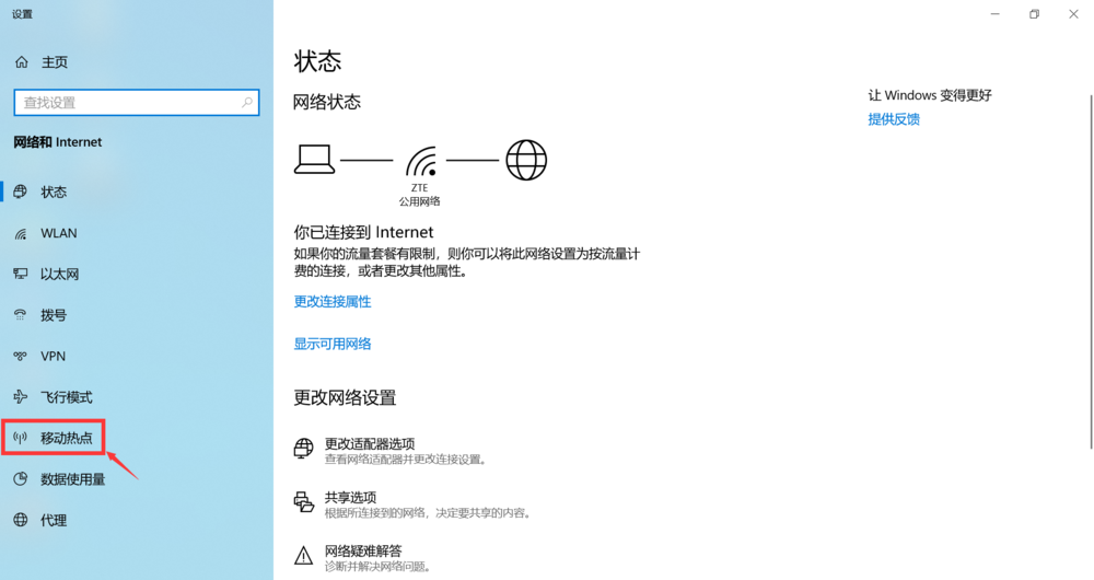 注意:如果你的筆記本電腦中沒有“移動熱點”選項,建議更新Windows系統;當然了,如果筆記本電腦中沒有無線網卡,則無法開啟熱點,建議配置一塊無線網卡。