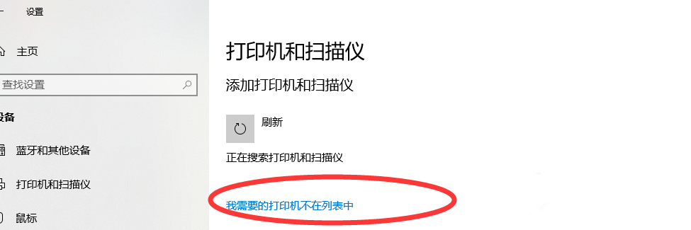 正在搜索中,這里會有提示,如圖,點擊【我需要的打印機不在列表中】,