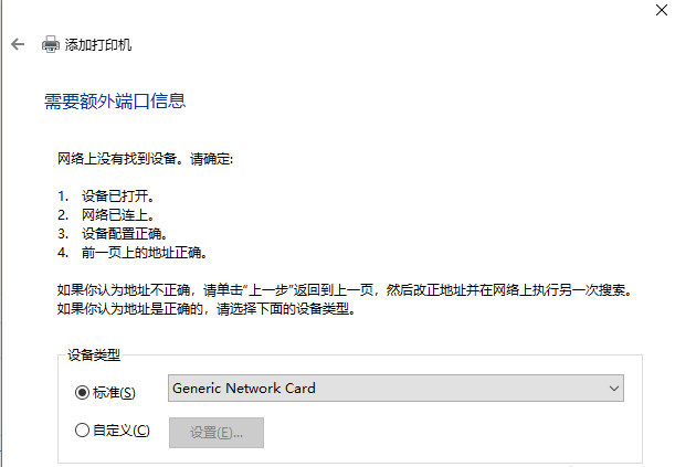 進入以下界面,如圖,輸入打印機IP地址,繼續進行下一步,閱讀相關信息,選擇設備類型,