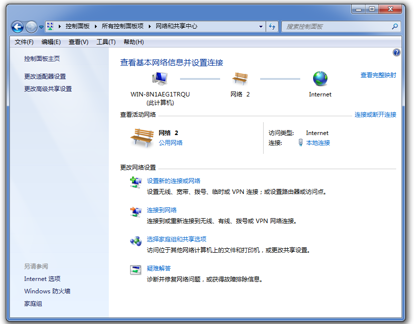 2、進入以下界面,點擊左側的【更改適配器設置】,如圖,