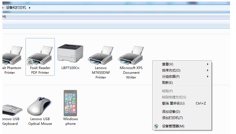 鼠標右擊空白處,彈出菜單,選擇【添加打印機】,如圖,