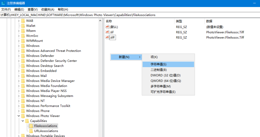 打開注冊表,依次點擊【HKEY_LOCAL_MACHINE/SOFTWARE/Microsoft/Windows Photo Viewer/Capabilities/FileAssociations】,