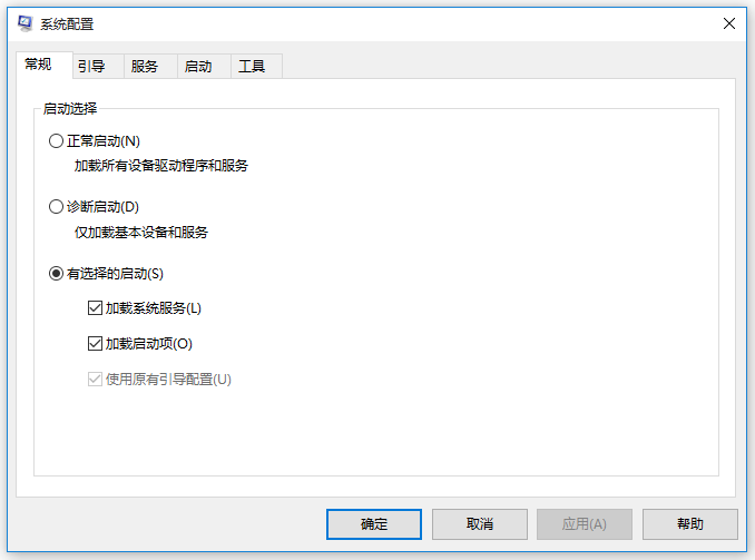 2、進入系統配置窗口,點擊【常規】選項,勾選【有選擇的啟動】——【加載系統服務】——【加載啟動項】,