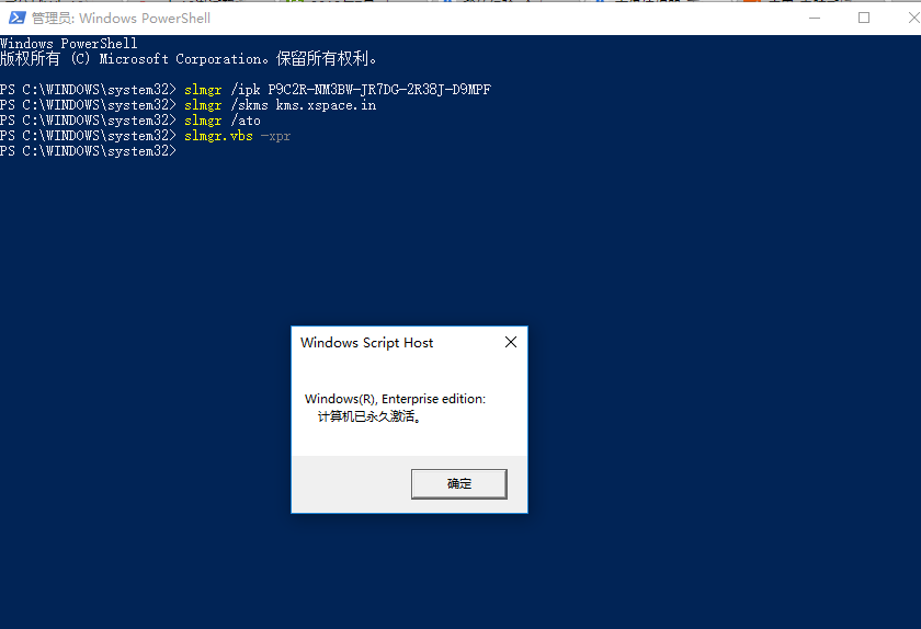 輸入slmgr /ato激活命令,回車,提示激活成功;再次輸入slmgr.vbs -xpr,查看是否永久激活,