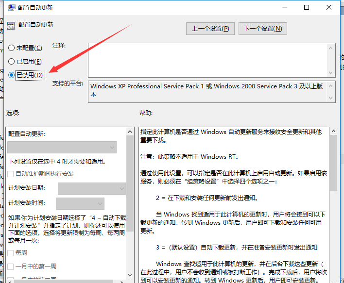 雙擊【配置自動更新】,彈出界面,勾選【已禁用】,點擊確定,就能關閉Windows自動更新。