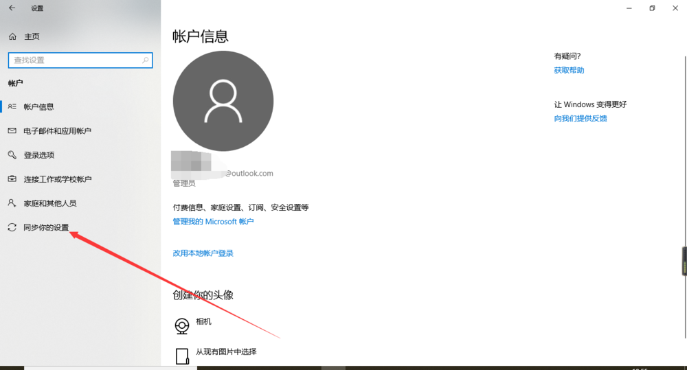 點擊【賬戶】選項,如圖,在左側點擊【同步你的設置】,