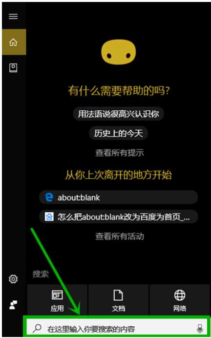 在任務欄單擊小娜圖標,然后在搜索框輸入“edge”,