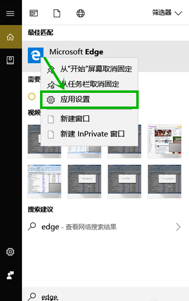找到edge瀏覽器,右擊選擇【應用設置】選項,打開設置界面,進行相關的重置和修復操作,這里就略過了。