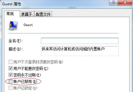 3、 雙擊【Guest】,打開【Guest屬性】窗口,確保【賬戶已禁用】選項沒有被勾選。