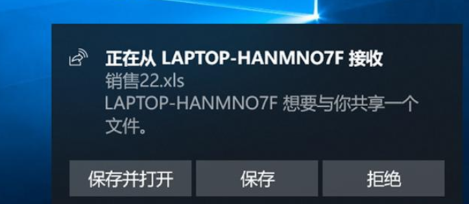 3、在要接收文件/圖片的電腦右下角就會彈出通知,選擇"保存并打開"或"保存"即可。