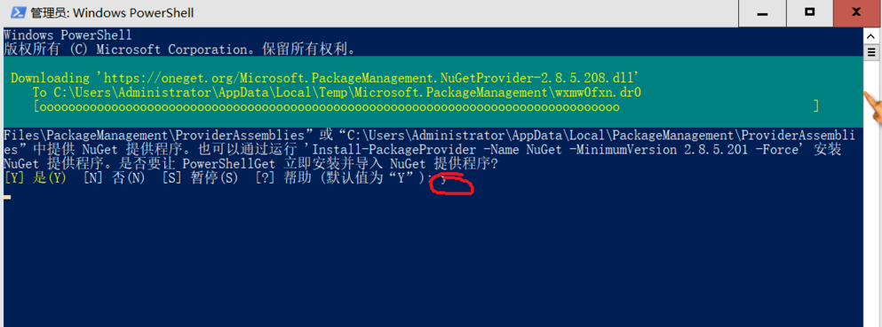 輸入“Y”并回車,同意安裝導入 NuGet提供程序。