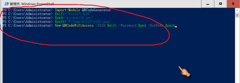 4、New-QRCodeWifiAccess -SSID $wifi -Password $pwd -OutPath $path
