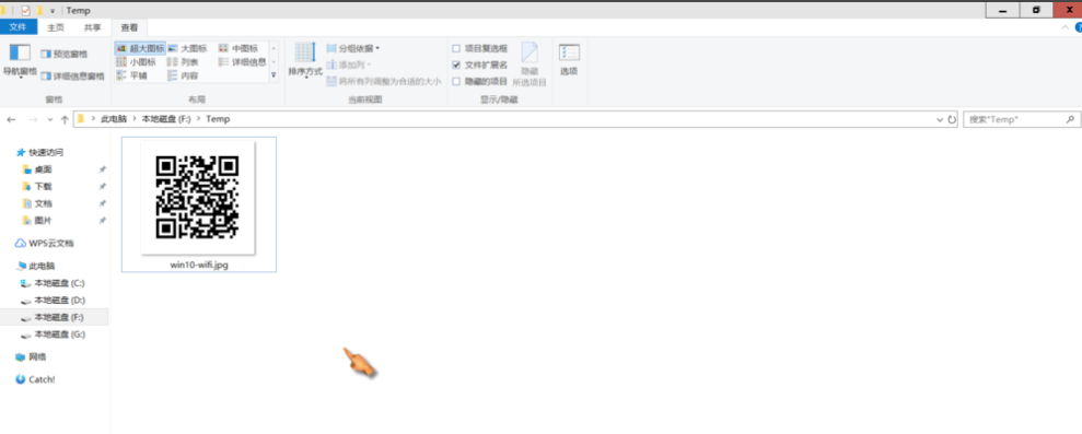 打開我的電腦,按路徑“path="F:/Temp/win10-wifi.png”,即可找到生成的WiFi熱點二維碼。