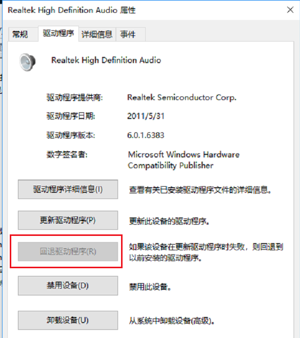 進去驅動程序之后,點擊回退驅動程序,如下圖所示: