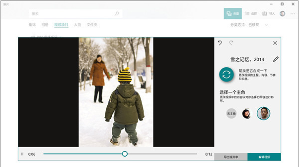 此外新版照片UWP還加入了基于人像面孔識別的自動制作視頻相冊功能,注意!!是自動制作喲!