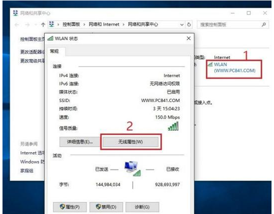 2、然后點擊當前已經連接上的Wifi名稱,在彈出的無線屬性中,繼續點擊“無線屬性”,如圖。