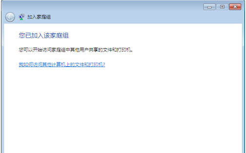當(dāng)顯示“你已成功加入家庭組”界面時,表明成功加入家庭組,點(diǎn)擊“完成”按鈕。如圖所示: