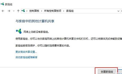 從打開的“家庭組”界面中,點(diǎn)擊“創(chuàng)建家庭組”按鈕,如圖所示: