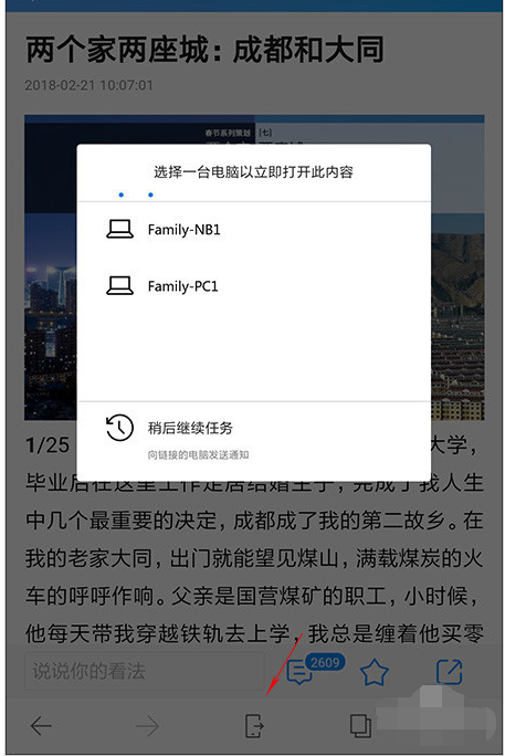 手機上看到一篇好的文章怎么辦?添加收藏,再從PC上打開?嗯,這顯然不是最有逼格的做法。正確的姿勢是,打開手機Edge瀏覽器,點擊下方工具欄中的“發送到”圖標,然后從鏈接賬戶中選擇最終要推送到的電腦。分分秒后,那個被“敲門”的電腦就會自動打開當前網頁。注意!是自動!自動!絕對要比某些第三方瀏覽器的推送體驗好得多。