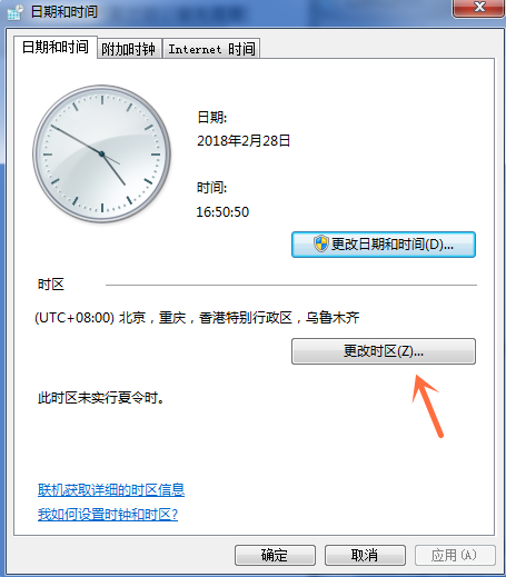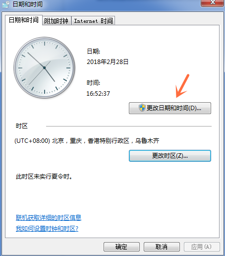 4、我們可以看到已經將時區更改過來了,如果是時區的問題,時間會自動調整,如果不是,點擊更改日期和時間,如下圖所示: