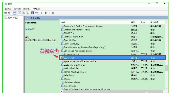 2、在打開的本地服務窗口,我們找到superfetch項并左鍵雙擊“superfetch”;
