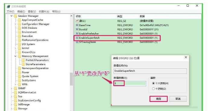 10、更改后為EnableSuperfetch REG_DWORD 0x000000003(3),退出注冊表編輯器,重啟電腦即可。