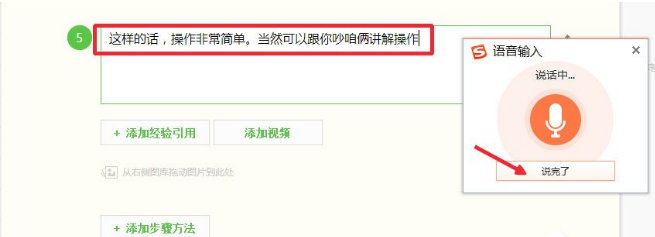 4、把光標放在需要輸入文字的地方,然后點擊開始說話;