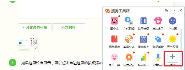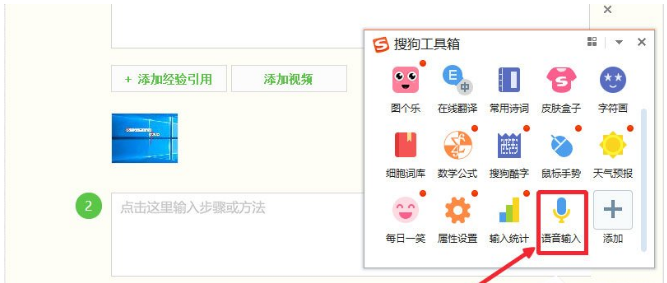 1、電腦正常連接麥克風以后就可以使用語音輸入了,使用搜狗輸入法,點擊浮動條上的工具箱按鈕;