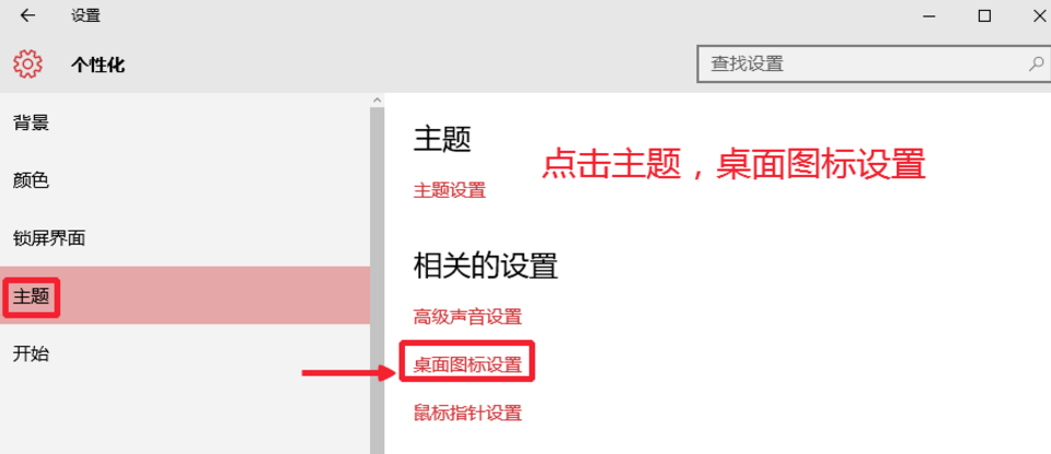 2、個性化界面,點擊主題按鈕,然后右邊選擇桌面圖標設置選項打開,