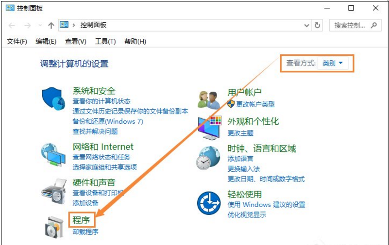 2、查看方式切換為“類別”,再點(diǎn)擊“程序”;