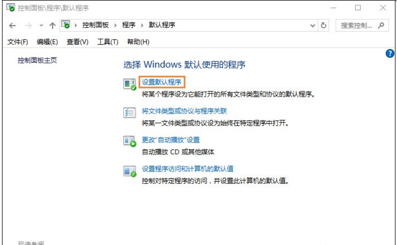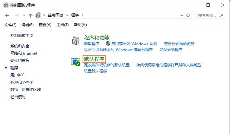 3、在右側(cè)界面中找到并打開“默認(rèn)程序”,再點(diǎn)擊“設(shè)置默認(rèn)程序”,等待加載;
