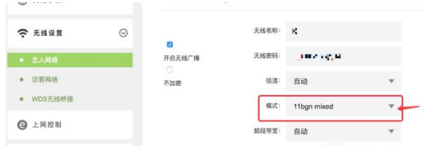 4、在無線設置頁面,點擊打開‘模式’旁邊的下拉框。
