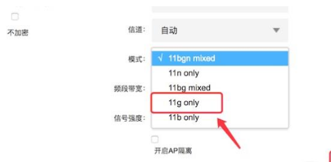 5、打開下拉框后,選擇‘11g only'選項,然后點擊下方的‘保存’按鈕。