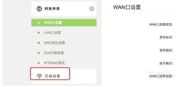 3、打開高級設置頁面后,點擊左邊的‘無線設置’選項,