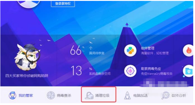 在電腦管家下方,點擊‘清理垃圾’,進行垃圾掃描并清理。