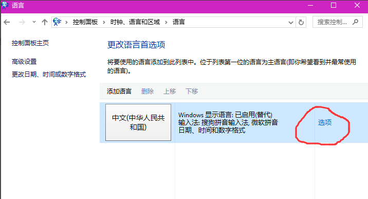 2、時鐘、語言和區(qū)域-語言-選項(xiàng),