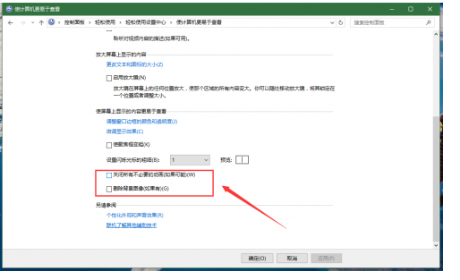 2、查看“關(guān)閉所有不必要的動(dòng)畫(huà)”和“刪除背景圖像”是否被勾選