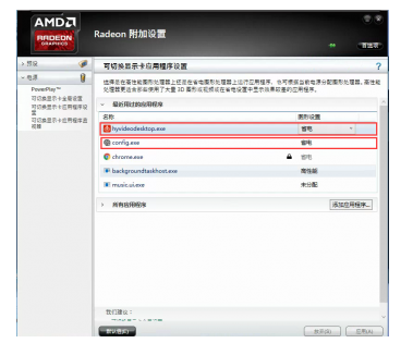 5、找到“hyvideodesktop.exe”和“config.exe”,把右側(cè)的“圖像設(shè)置”改為“省電”狀態(tài),然后點(diǎn)擊“應(yīng)用”即可。