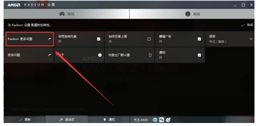 3、在新界面點(diǎn)擊“Radeon更多設(shè)置”;