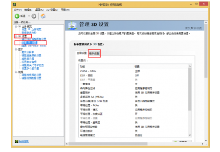 2、選擇“3D設(shè)置”里的“管理3D設(shè)置”,然后點(diǎn)擊框選中的“程序設(shè)置”,