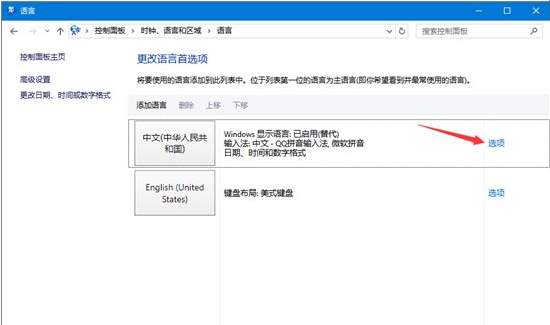 2、如果你要刪除的輸入法是中文輸入法就點擊中文后面的“選項”按鈕,如果你要刪除的是英文輸入法,則選擇English后面的“選項”按鈕。