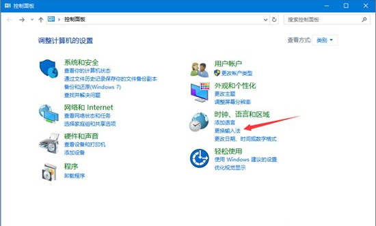 1、打開控制面板,點擊“時鐘、語言和區域”下的“更換輸入法”選項。