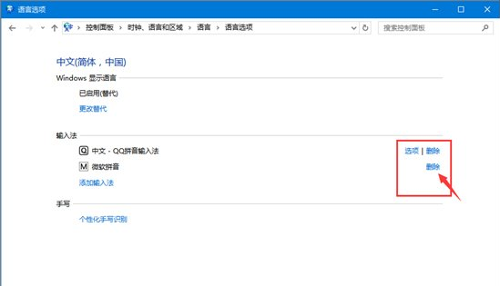 3、點擊要刪除的輸入法后面的“刪除”選項,然后點擊“保存”退出即可。