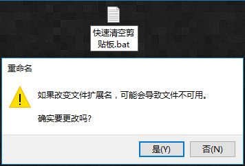 2、將“新建 文本文檔.txt”改名為“快速清空剪貼板.bat”并保存在除桌面和C盤外的分區上,如:D:/快速清空剪貼板.bat 。