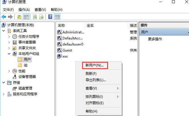 1、右鍵我的電腦→管理→系統(tǒng)工具→本地用戶和組→用戶→中間空白區(qū)域右鍵→新用戶;