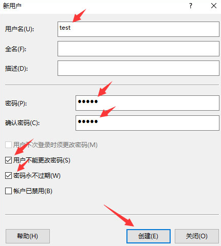 2、輸入自設(shè)的用戶名和密碼,如圖勾選→創(chuàng)建;