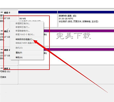 二、打開磁盤管理工具,將需要合并的硬盤轉換為動態磁盤(PS:非系統磁盤)