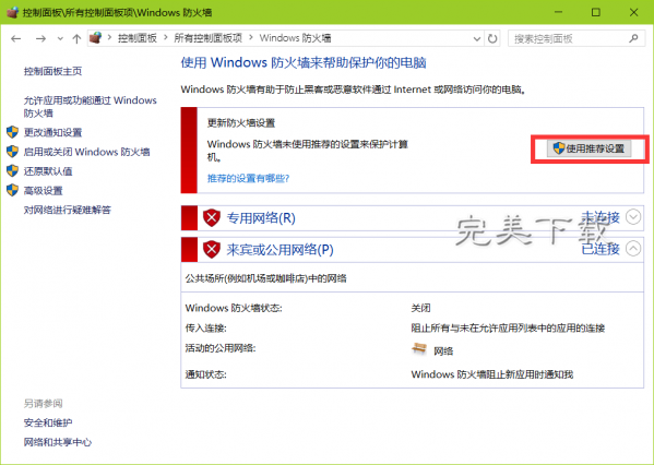 4、直接使用windows防火墻推薦設置就即可(或者開啟防火墻)