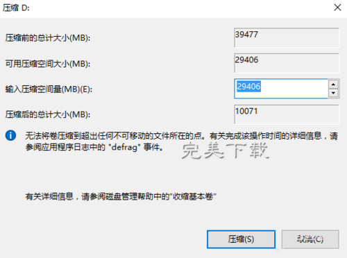 4、系統會計算出可以壓縮空間,輸入你需要壓縮空間,然后點擊壓縮。