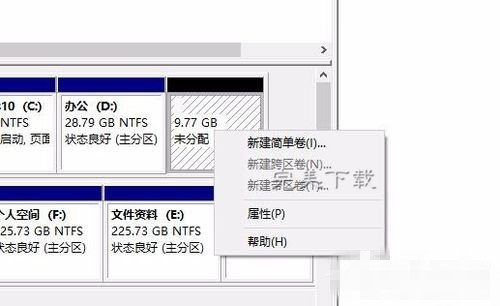 5、壓縮完成后,會看到一個未分配的分區,右鍵點擊,選擇“新建簡單卷”。